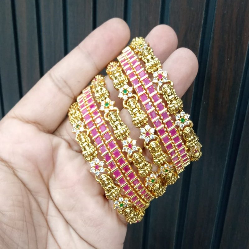 PINK STONE BANGLES WITH LAXMI IDOL