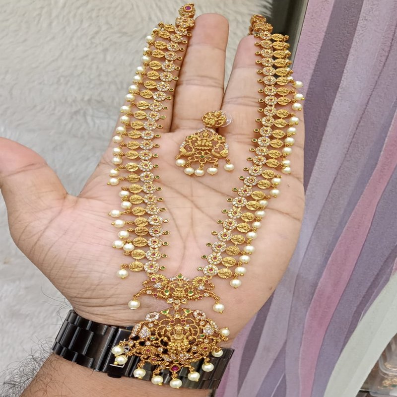 TRADITIONAL ANTIQUE HARAM WITH RUBY AND EMERALD STONES SOUTH INDIAN NECKLACE SET